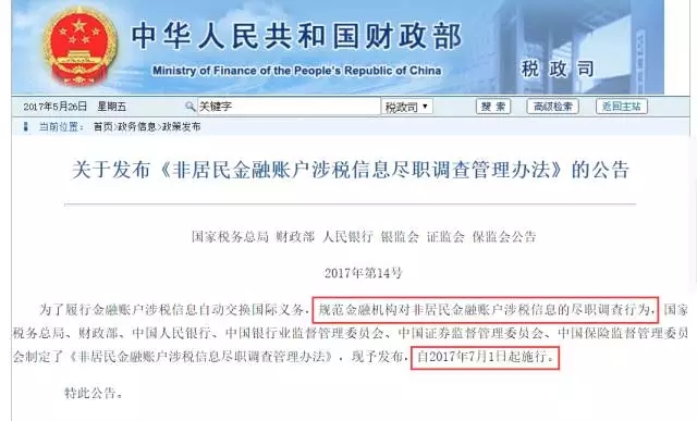 7月1日起,華人海外資產(chǎn)將被清查!PR、TR、留學(xué)生皆受影響!關(guān)于中國版CRS,你需要知道這些事!近日,中國國家稅務(wù)總局、財(cái)政部、人民銀行、銀監(jiān)會、證監(jiān)會、保監(jiān)會聯(lián)合發(fā)布了《非居民金融賬戶涉稅信息盡職調(diào)查管理辦法》,這就意味著中國版CRS正式落地。